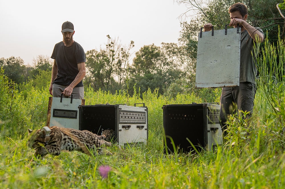 Cabe mencionar que en los grandes corrales ubicados en el Portal Uguay, se encuentran otros cuatro ocelotes que próximamente podrán ser liberados para continuar ampliando esta incipiente población y que provienen también del establecimiento La Peregrina y del Centro de Atención de la Fauna Autóctona de Jujuy, además de la cría nacida en el lugar.