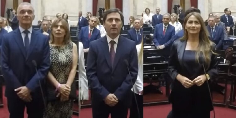 Más adelante, otros dos legisladores electos realizaron un juramento parecido: las peronistas María Celeste Giménez Navarro, de San Juan, lo hizo “por el pueblo sanjuanino, por Néstor (Kirchner), por Cristina (Fernández de Kirchner) y por los 30 mil compañeros detenidos desaparecidos”; y Alicia Kirchner, de Santa Cruz, juró por “Néstor, por los derechos humanos y sociales y por los santacruceños”.