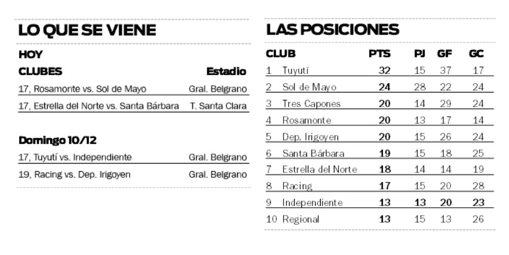 La fecha continuará el próximo domingo 10, en el estadio de General Belgrano, en donde funciona la Liga Apostoleña, con los choques entre el puntero del certamen, Tuyutí, frente a Independiente, desde las 17. Mientras que a segunda hora, desde las 19, lo harán Racing frente a Deportivo Irigoyen.