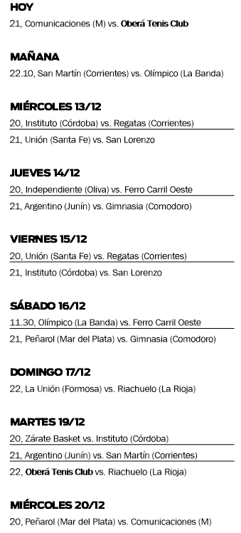 Luego de la presentación de esta noche en el interior correntino, el Celeste tendrá al menos un juego más antes de las fiestas de fin de año. Será el martes 19 de diciembre, desde las 22 y en el Luis Augusto Derna de Oberá, ante Riachuelo de La Rioja.