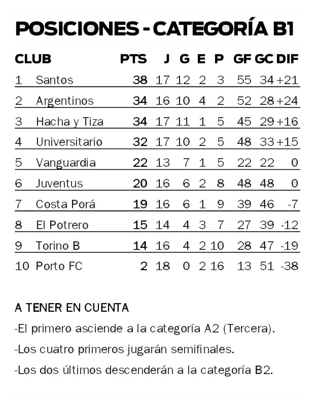 Así las cosas, con el triunfo Santos se acomodó en la cima y el domingo venidero desde las 17 cerrará la fase regular de la B1 frente a Torino B, que necesita de los puntos para evitar el descenso. Una victoria de Santos le dará automáticamente el ascenso a la A2.