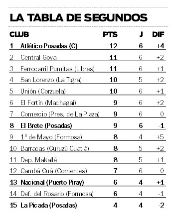 La derrota de El Brete a manos de Atlético Oberá (2-0), el empate entre Unión de Corzuela y Comercio de Santa Sylvina (1-1) en Chaco; además de la postergación del partido entre Unión de Sáenz Peña y San Lorenzo de La Tigra por falta de médico; todo eso allanó el camino para que Atlético Posadas finalmente se quede con el único boleto que entregaba la región al mejor segundo entre las quince zonas.