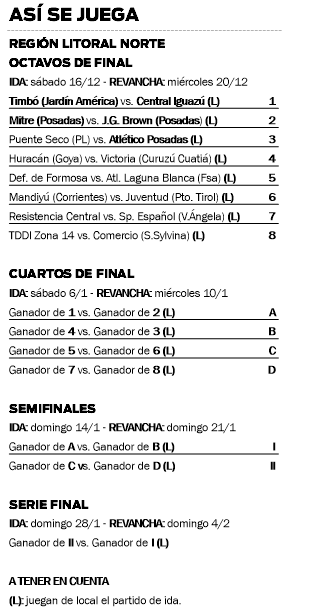 En cuanto a la próxima instancia, los cuartos de final se jugarán tras las fiestas, en enero. Y allí se cruzarán los misioneros, ya que el ganador de Timbó y Central chocará con el vencedor de Mitre y Brown. Respecto al Decano, en caso de avanzar deberá medirse ante el vencedor del choque entre Huracán de Goya y Victoria de Curuzú Cuatiá.