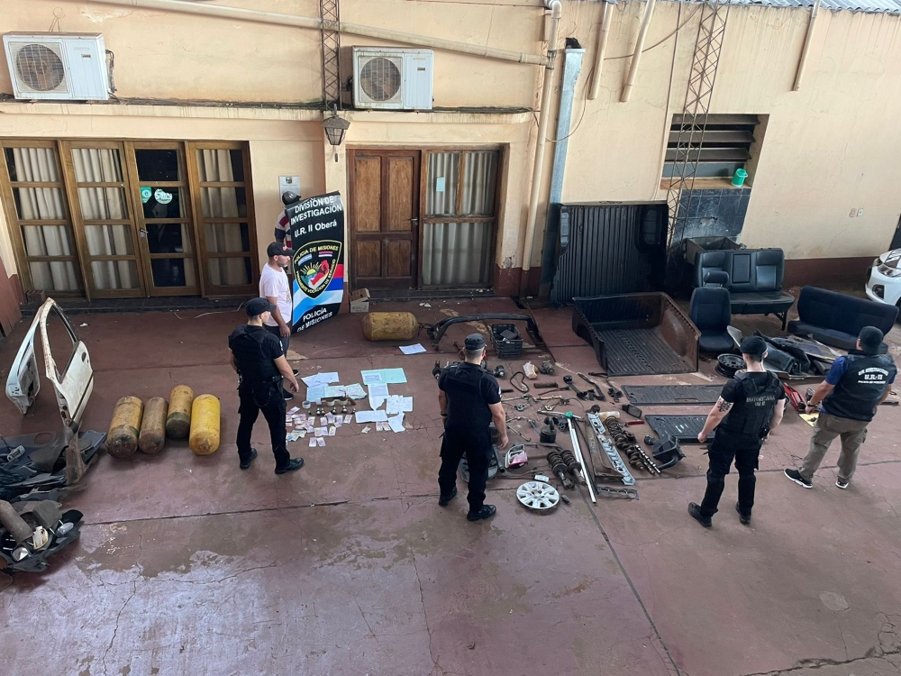 El miércoles, durante la siesta, sobre la ruta nacional 14 en la localidad de Guaraní, los cinco fueron arrestados tras ser vinculados al robo de automotores en la provincia de Buenos Aires. Se les incautaron tres automóviles -dos de ellos robados en la provincia de mención- y una motocicleta sustraída, desarmada en el interior de uno de los vehículos. En los allanamientos incautaron una escopeta calibre 36 y un cartucho del mismo calibre, documentaciones vehiculares, cuatro tanques de GNC, una alfombra de vehículo Peugeot y dos puertas de un Fiat Palio.