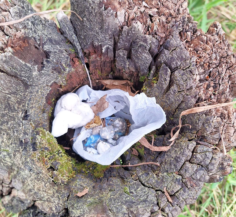 HALLAZGO. En un viejo tronco, varias horas después de la requisa, apareció “la bolsa”.