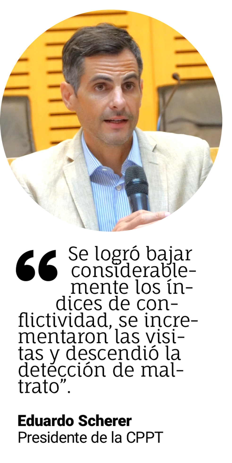 “La prevención se hace con la presencia de los funcionarios”, afirmó, y agregó que se “lograron bajar considerablemente los índices de conflictividad. Se incrementaron las visitas (comisarías, cárceles…) y bajó la detección de malos tratos, informes negativos y denuncias. Se resuelven también otras cuestiones y se trata con todas las autoridades que tienen la potestad y decisión de transformar la realidad”.