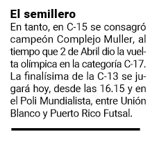 En tercer turno se enfrentarán Mbareté y Vago’s Futsal, mientras que el plato fuerte será el cruce de campeones: Barsa Belgrano y Pueblo Chico FS a partir de las 21.30 en un duelo para alquilar balcones.
