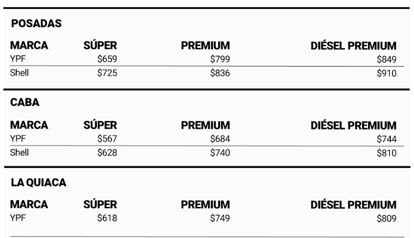 El salto de precios es mucho más exorbitante si se habla de la marca Shell, cuyas estaciones en Posadas venden el litro de súper en $725 muy cerca de los $800; pero en las estaciones porteñas se cobra por el mismo producto $620.