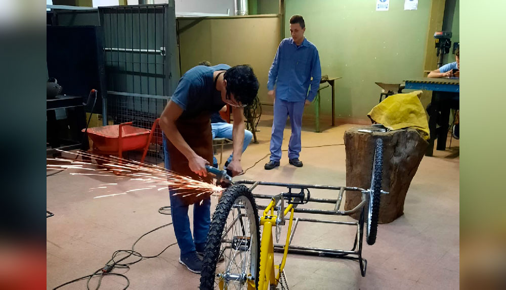 Por su parte, el profesor Gerardo Schneider contó que “los estudiantes del Centro de Formación Itinerante N°1, Aula Satélite N° 2, con Especialización en Mecánica de Motos desarrollaron este proyecto, en el cual, transformaron una simple bicicleta en una herramienta que puede cambiarle la vida a muchos chicos con problemas de discapacidad: un triciclo”.