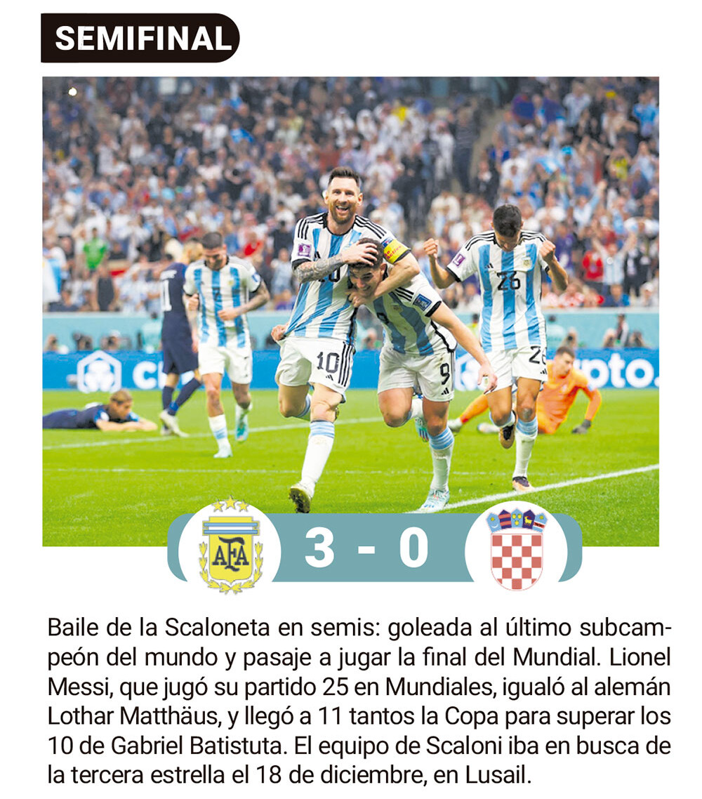 Argentina jugó 80 minutos de ensueño, en los que Messi fue el director de una orquesta ajustada para la ejecución de la última pieza. La discrepancia entre un equipo y otro en el primer tiempo se plasmó con una diferencia de nivel asombroso para la instancia en disputa.