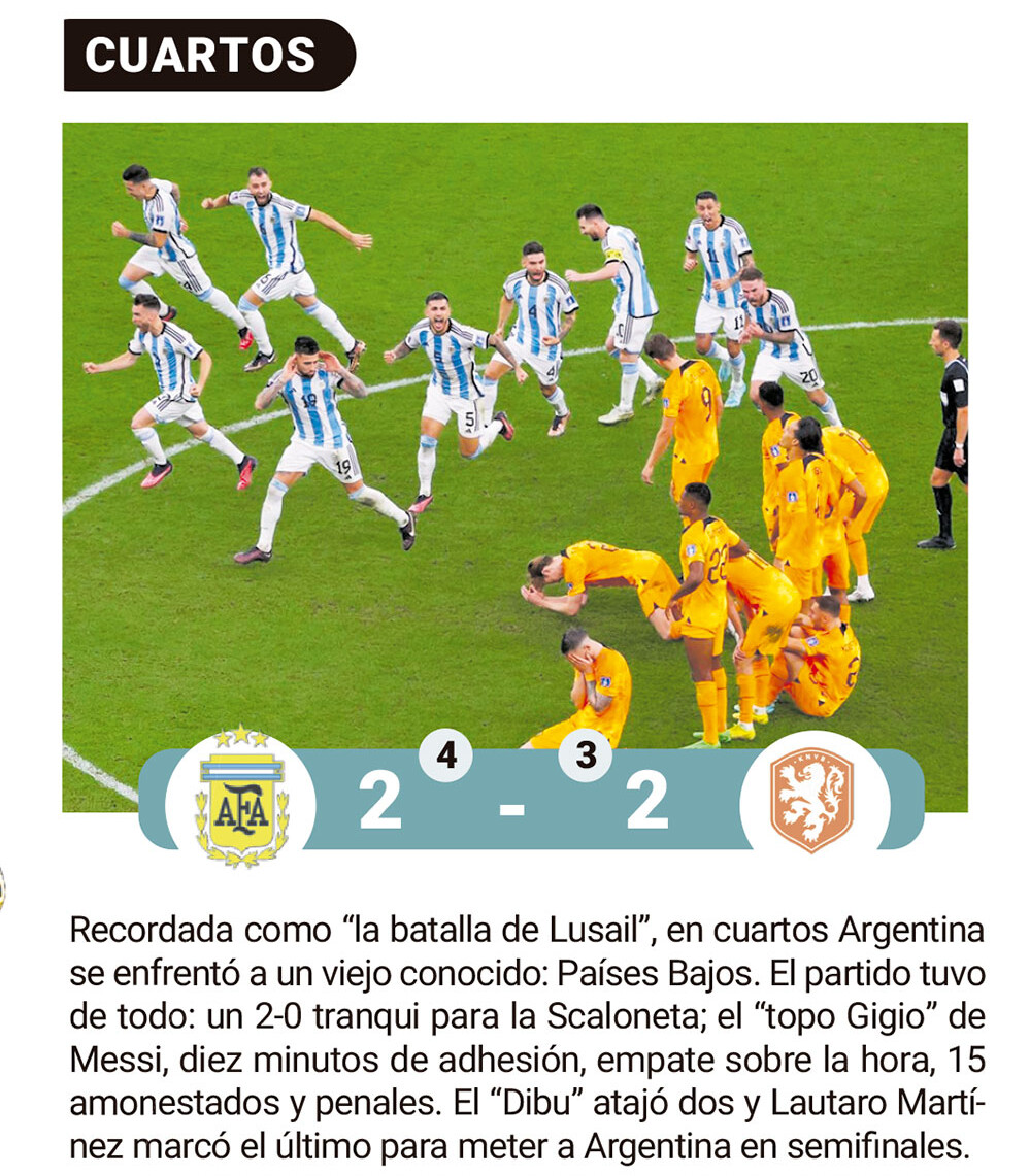 Los penales fueron la última instancia de un partido que ya se había convertido en un suplicio para los corazones que palpitaban por la tercera estrella. Los argentinos no fallaron y “Dibu” Martínez fue leyenda para finalmente, de una vez y para siempre, gritar “¡Argentina campeón mundial!”.