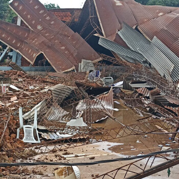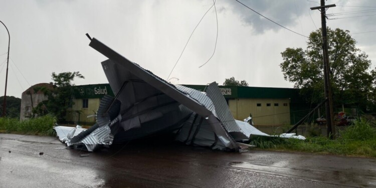 Entre los daños registrados por la Policía de Misiones, reportaron que se produjo la voladura del techo de un depósito de una empresa de salud en Oberá, sobre la provincial 103 y avenida Picada Sarmiento, frente al Cementerio Sueco.