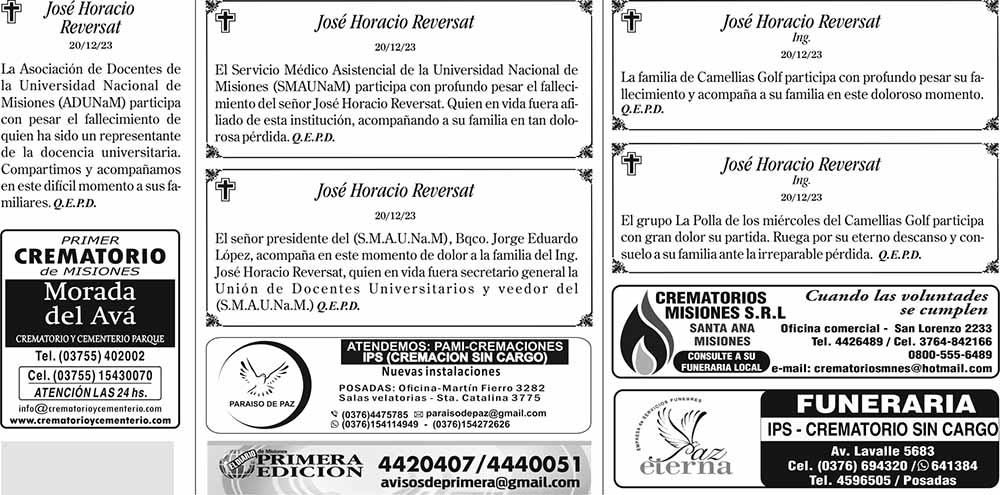 Fúnebres del Jueves 21 de Diciembre de 2023
