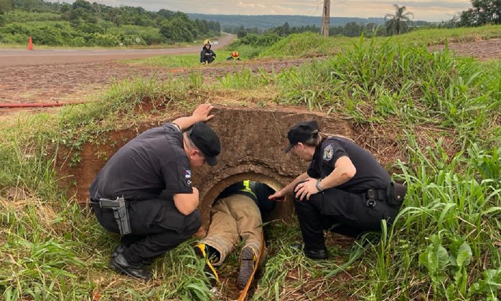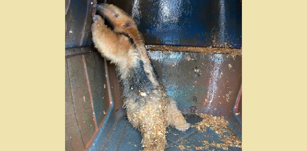 Posteriormente, Bomberos Voluntarios de la zona y de la ciudad de Oberá trabajaron de manera conjunta hasta lograr rescatar al oso hormiguero y ponerlo bajo resguardo.