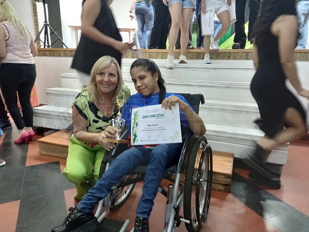 El deporte adaptado se llevó todos los aplausos, representado por la Escuela Especial N° 5 con Agustín Sosa, Pequeño Mundo con Ana Vera, Instituto Huellas con Leandro Silva y Ayelén Ríos, del básquet adaptado.