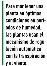 Cuando el calor aprieta y se le suma la humedad, existe un mecanismo de regulación automático en todo ser vivo que es la transpiración, lo que funciona como equilibrio superficial para refrescar, a lo que se le suma la acción del viento. Al igual que el cuerpo humano, la sensación térmica elevada nos hace segregar sudor por los poros y en combinación con el aire nos provoca cierto alivio o frescor. De la misma manera se complementa el sudor sobre las hojas de las plantas para activar algunas funciones.