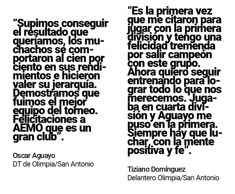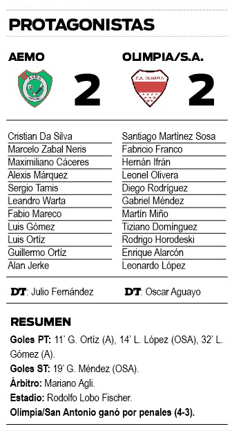 En un partido vibrante de principio a fin en el estadio Lobo Fischer, la suerte o puntería de los penales fue favorable a Olimpia/San Antonio, que venció a AEMO en esa tanda y se coronó campeón del Clausura de la Liga Regional Obereña de fútbol.