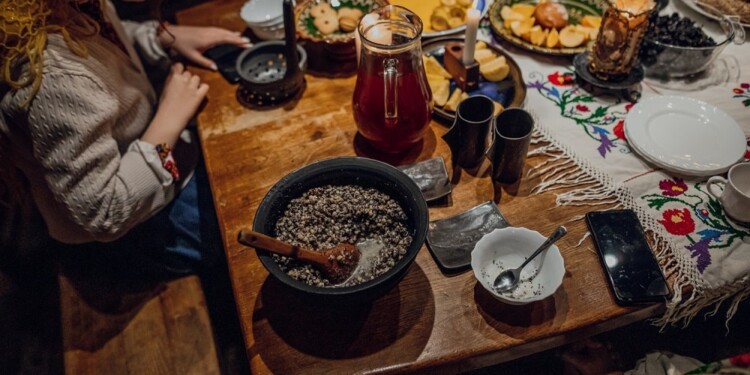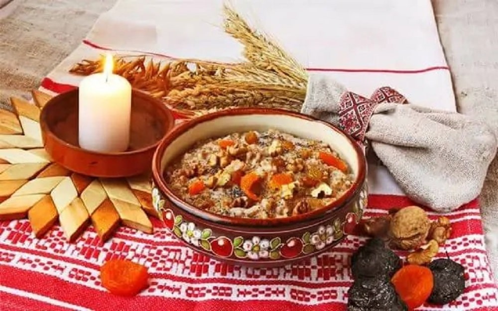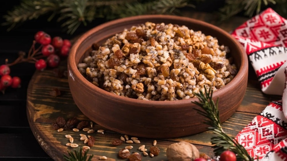 • Kutya: es un plato dulce elaborado con granos de trigo cocidos, semillas de amapola, miel y frutos secos. Se come antes y después de la cena. Simboliza una buena cosecha, buen clima para el año siguiente y la vida eterna.