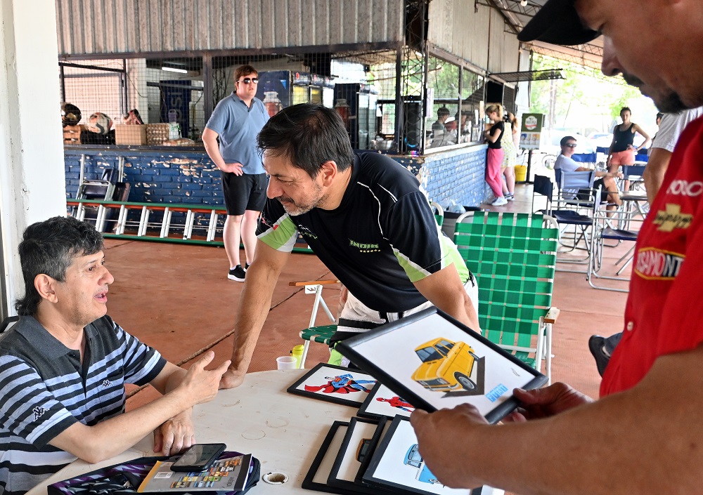 Dijo que “para mí, todos los clientes son importantes, pero muchos dejan su tiempo, sus ocupaciones, y se acercan a saludarme y a tomarse una fotografía, como es el caso de Rudy Bundziak, que vino a buscar su cuadro y a saludarme. Esas cosas no tienen precio. O Julio César “Bananita” Benítez, que terminó la serie, bajó del auto y fue derecho al stand donde yo estaba para sentarse a comer y a tomar agua”.