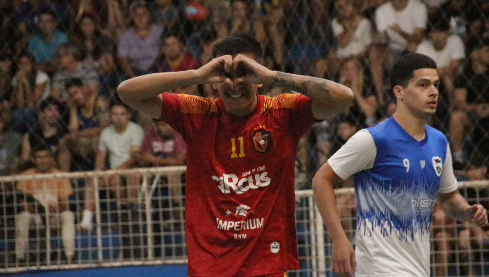 MIRADA FIJA. Félix Guerrero marcó el primer tanto de Telecentro y lo festeja a la cámara, de forma muy particular. (Gentileza Solo futsal).