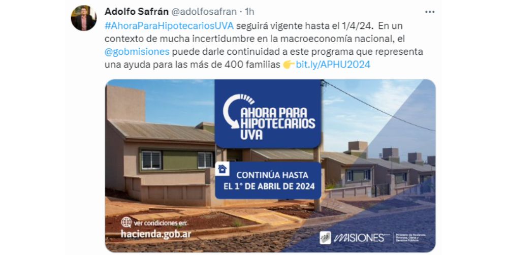 Tags: Adolfo SafránAhora Misionesdeudores Hipotecarios UVAHipotecarios UVAMinisterio de HaciendaMisiones