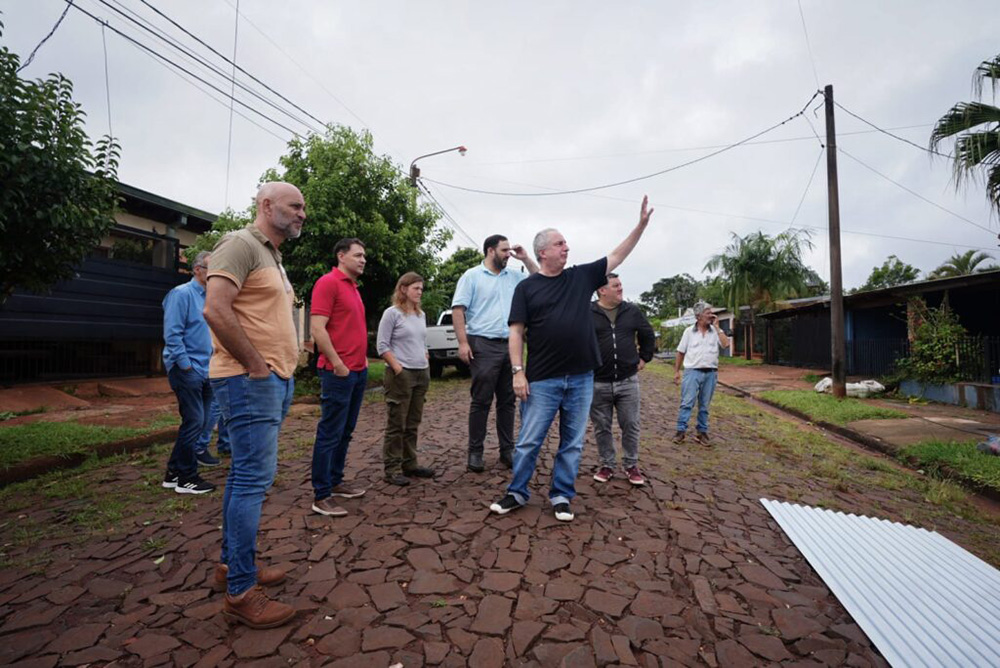 Acompañado por el intendente local Matías Sebely, y el ministro de Gobierno Héctor Llera, el mandatario se desplazó por el barrio Graeffner, donde constató los estragos de la tormenta. Allí, visitó a una de las familias afectadas que sufrió la voladura del techo de su vivienda.