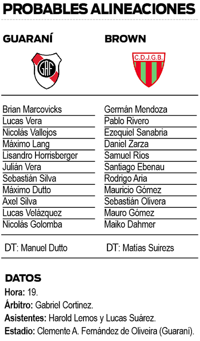 Guaraní Antonio Franco y Jorge Gibson Brown despiden el 2023 con el juego que definirá al campeón del Clausura. El encuentro se jugará hoy a partir de las 19, en el estadio Clemente Argentino Fernández de Oliveira.