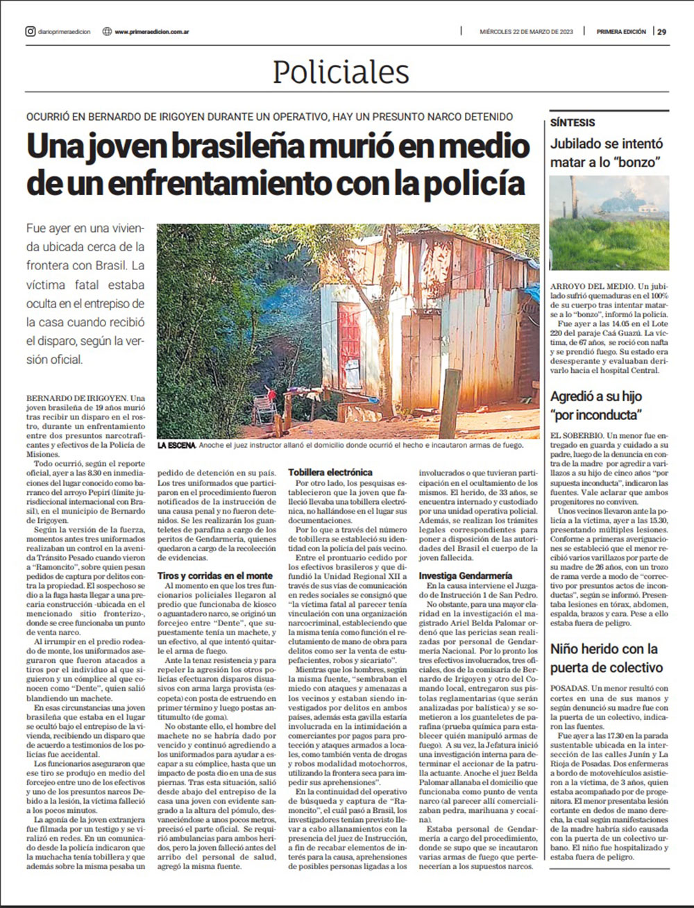 La cantidad de homicidios descendió de acuerdo a las cifras o estadísticas, de 66 casos en 2022 a 46 registrados hasta ayer, que fue hallado el trabajador rural Ricardo Gustavo Hohenstatt (81) asesinado de un disparo en la cabeza en su chacra en Montecarlo.