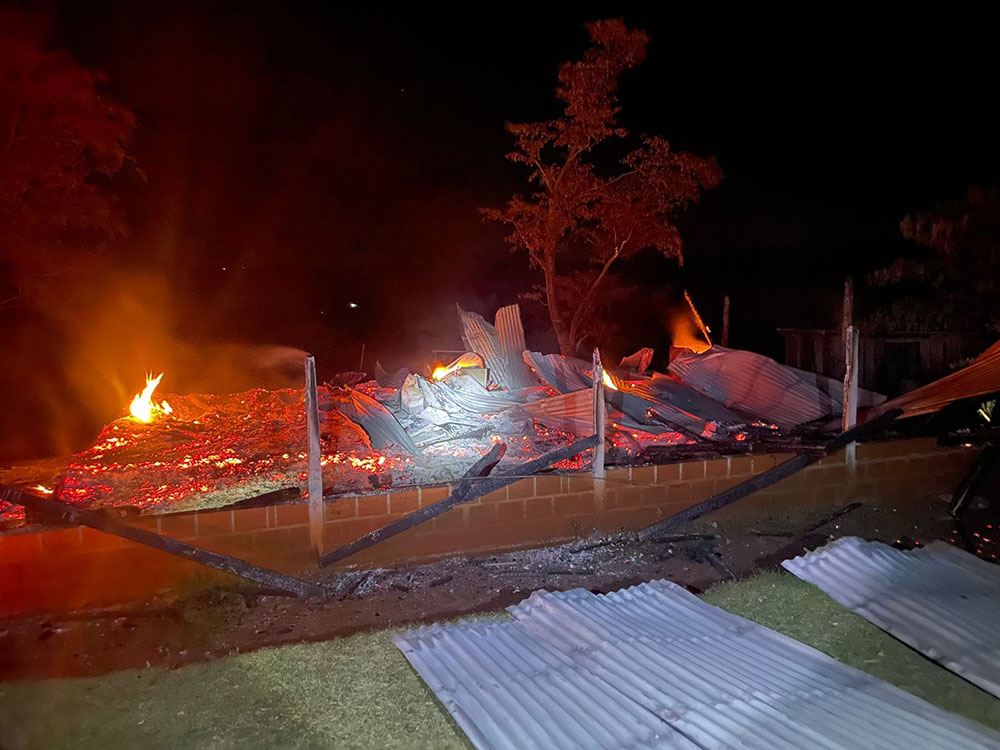 En la noche de este jueves 4 de enero, a las 22 horas aproximadamente, se desató un incendio en una vivienda situada en Picada Guaviroba, El Soberbio. La casa, de 9×11 metros, con una base de material y el resto de madera, con un techo compuesto por chapas de zinc fue consumida por completo por las llamas.