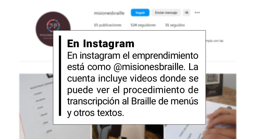 A raíz de esto, PRIMERA EDICIÓN comenzó a buscar quiénes brindan el servicio de transcripción al Braille y cuánto cuesta ese trabajo, fue así que dio con Misiones Braille, el único emprendimiento que trabaja con “soluciones inclusivas”: transcribiendo las cartas y otros documentos y asesorando a los comercios.