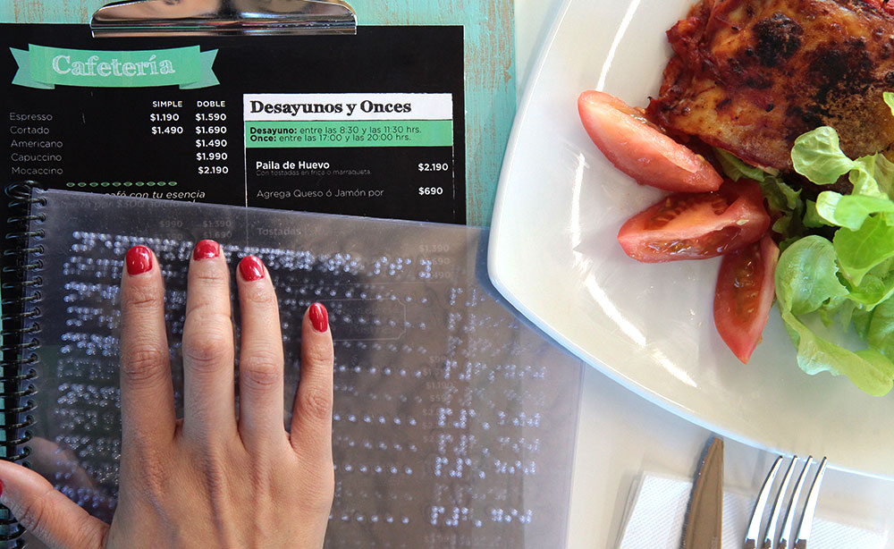 Además de eso, también imprimen menús con macrotipografía: un diseño tipográfico pensado para personas que quizás no tienen ceguera, pero sí un grado de discapacidad visual o baja visión; y asesoran a los negocios en materia de inclusión.