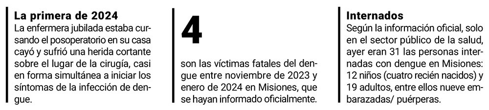 Ayer, solo en el sector público de la salud, eran 31 las personas internadas con dengue en Misiones: 12 niños (cuatro recién nacidos) y 19 adultos, entre ellos nueve embarazadas/puérperas.