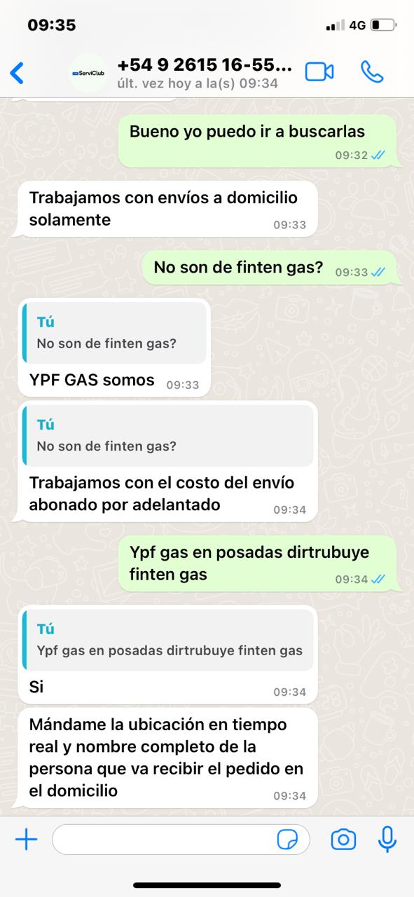 Aclaró que lo más probable es que una vez hecha la transferencia del pago “por adelantado”, el estafador bloquee al cliente en WhatsApp para que no pueda comunicarse más, como sucede a menudo con casos similares. “Además, desde Finten Gas no nos manejamos con esa modalidad”, indicó, respecto a la comunicación.