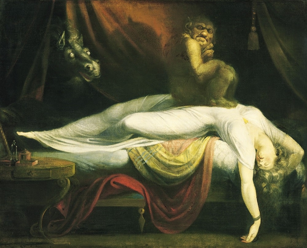 La obra “La pesadilla”, del pintor suizo Henry Fuseli, representa a la perfección dicha creencia, incluyendo, tal vez como un guiño literal al vocablo, una yegua oscura en el fondo del cuadro.