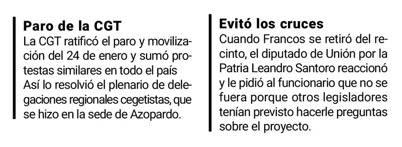 Se mantuvieron algunos reclamos, como el que hizo el presidente del bloque de Unión por la Patria, Germán Martínez, quien fue el primer orador de la jornada, y al igual que el martes señaló que “seguimos sin encontrar en la grilla los nombres de Luis Caputo, Federico Sturzenegger y el jefe de Gabinete Posse que son los máximos responsables de esta ley”.