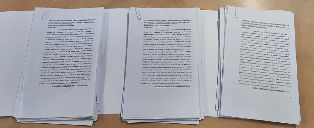 Estuvieron presentes en la firma del amparo, representantes de APAM (Asociación de Productores Agropecuarios de Misiones), UDAM (Unión de Agricultores de Misiones), ACPYN (Asociación Civil de Productores Yerbateros del Norte), Asociación Chimiray, Asociación de los Yerbatero del Alto Uruguay, Casa de la Familia Yerbatera, CAYA (Centro Agrario Yerbatero Argentino) y la Asociación Civil Agrícola, Ganadera y Forestal de la Zona Sur (AAGyFSur).