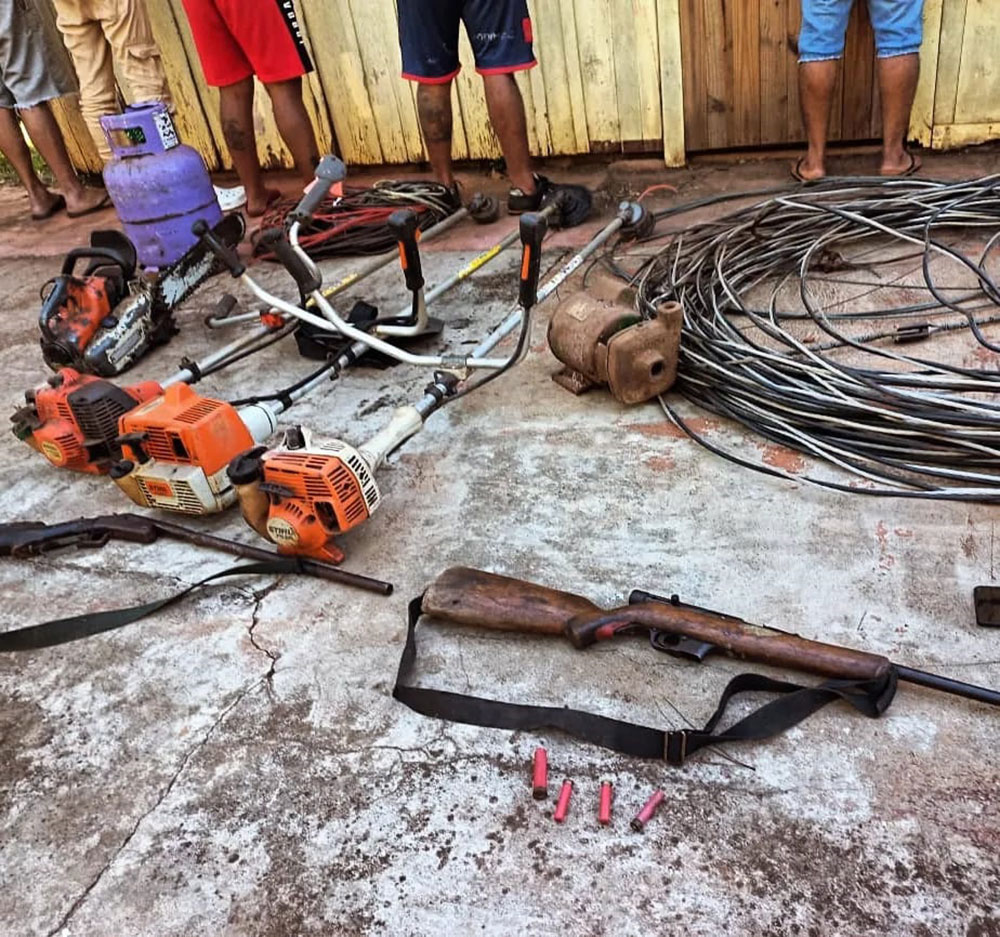 Con la orden de allanamiento del Juzgado correspondiente, los agentes irrumpieron en las moradas esta mañana, deteniendo a los implicados. Durante los allanamientos, se incautaron una escopeta calibre 36 con cargador, una escopeta tipo Winchester calibre 20, una TV de 32 pulgadas, una motosierra, tres motoguadañas, una bomba de agua, una garrafa, cinco machetes y un celular sujeto a peritaje, entre otros objetos.