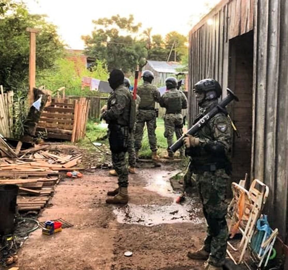 La tranquilidad de la calurosa mañana sabatina en el barrio Paso Viejo de Candelaria fue sacudida cuando efectivos de la Policía de Misiones realizaron un megaoperativo en el cual se allanaron en simultáneo cuatro viviendas. El resultado de los procedimientos, además del secuestro de armas de fuego, municiones, armas blancas y objetos robados, fue la detención de seis individuos, cuyas edades oscilan entre los 19 y 58 años, destacándose entre ellos Agustín, de 19 años, alias “Tompy” que tiene en su haber diez causas por diversos delitos, y Ezequiel, un exconvicto de 25 años, conocido como “Cabeza”.