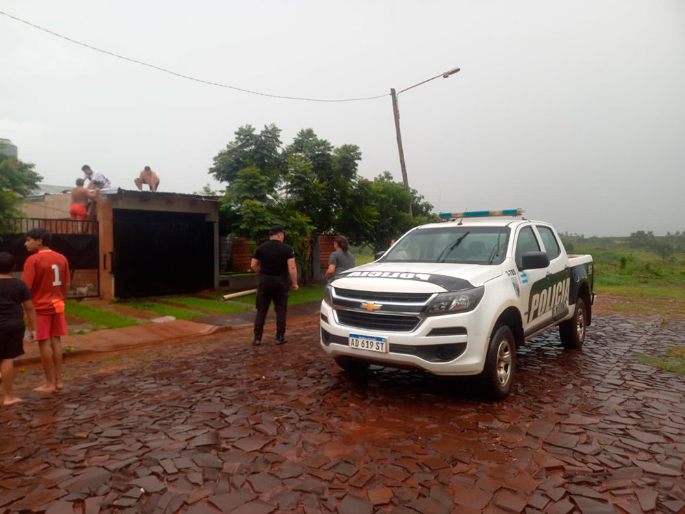 Hace pocas horas un fuerte temporal afectó a la localidad de Apóstoles. En principio no hubo que lamentar personas lesionadas, pero sí algunas familias sufrieron pérdidas materiales.