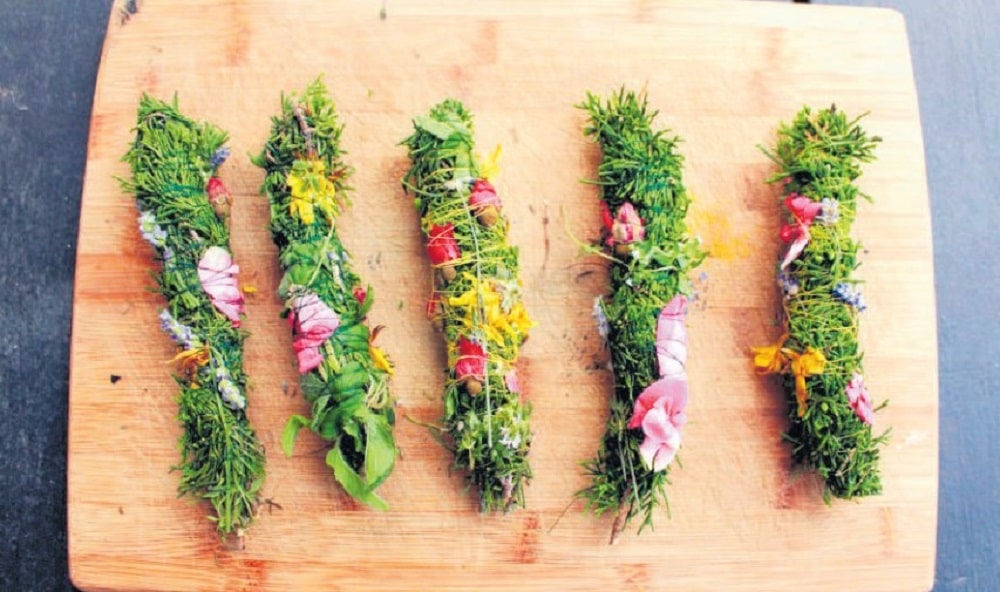 Existen varias formas, pero para mí la más simple es juntar un ramillete de las plantas escogidas para hacer nuestro incienso y bridarlas con una lana o yute u otro tipo de cuerda de origen natural, luego lo dejamos en un lugar aireado y a la sombra un mes al menos para que seque correctamente.
