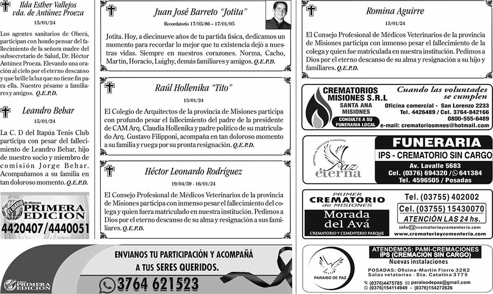 Tags: Fúnebres 17-01-2024