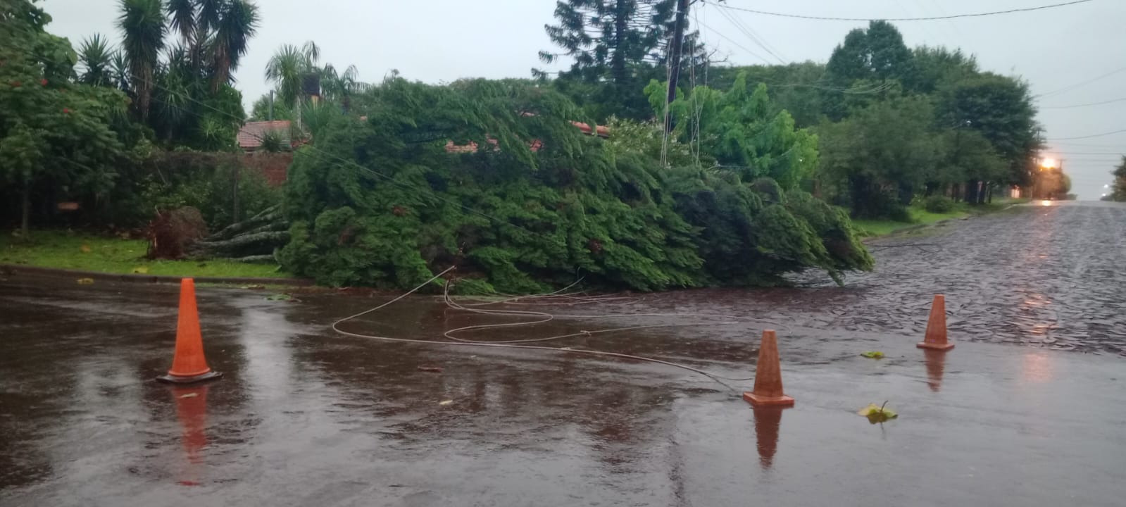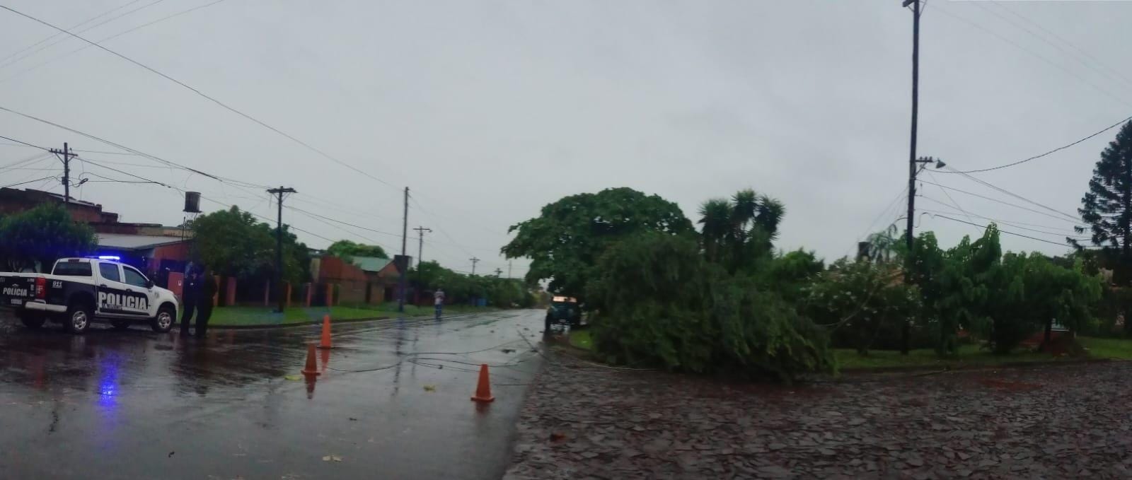 En Garupá, por ejemplo, en el barrio Villalonga, un árbol cayó arriba de una casa y derrumbó los postes de luz de alta tensión. Por ese motivo, la familia que habita en la vivienda quedó atrapada, sin poder salir y pidió la asistencia de efectivos de la comisaría local.