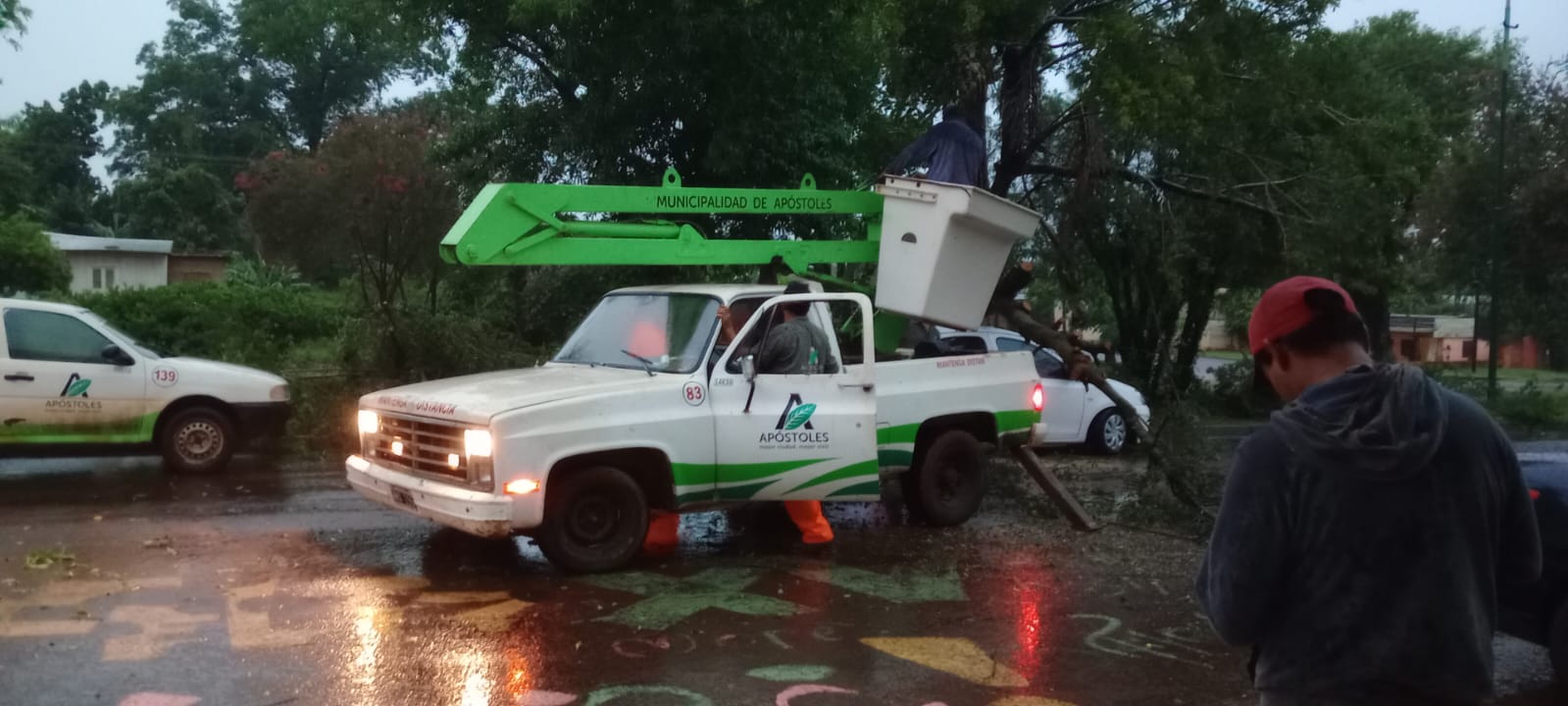 Sin notificar heridos, la ciudad de Apóstoles fue una de las más afectadas por caídas de árboles sobre autos y el tendido eléctrico.