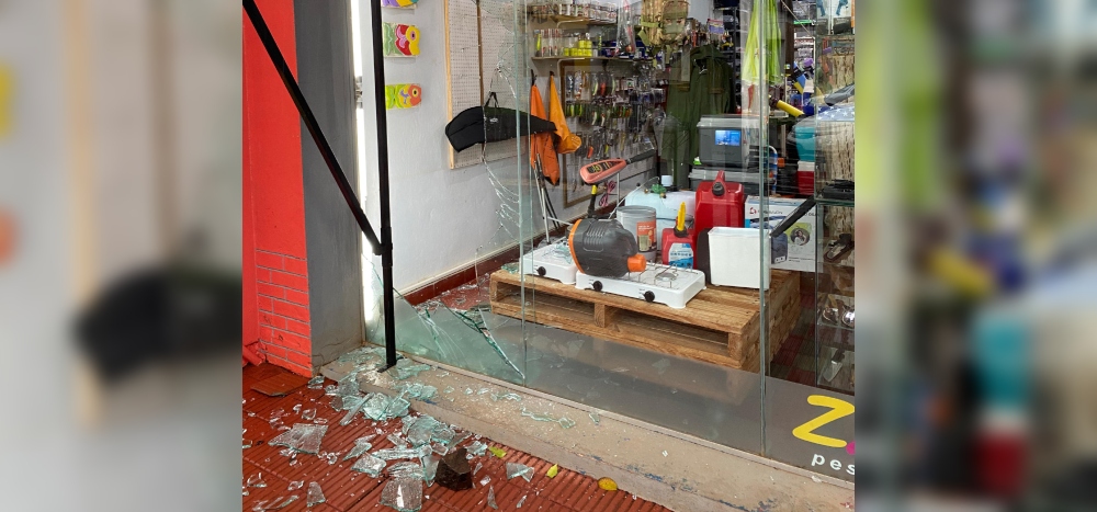 PRIMERA EDICIÓN pudo dialogar con el propietario, quien contó que se enteró que habían entrado a robar en el local de venta de artículos de caza, pesca y camping, cuando ayer temprano en la mañana un vecino le contó que la vidriera estaba rota. Al llegar se encontró con el blindex destrozado por una piedra mora que usaron los ladrones para poder ingresar.