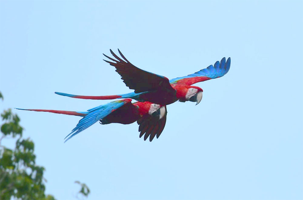 Otras gemas de los esteros son el colorido guacamayo rojo, de plumaje escarlata, cara despoblada y alas con verdes y azules; el jabirú, una de las aves más grandes de América, con 1,40 metros de altura y que puede alcanzar los tres metros de ancho si extiende sus alas; o el diminuto doradito copetón, de copete negro y amarillo, vientre amarillo fuerte y dorso pardo.