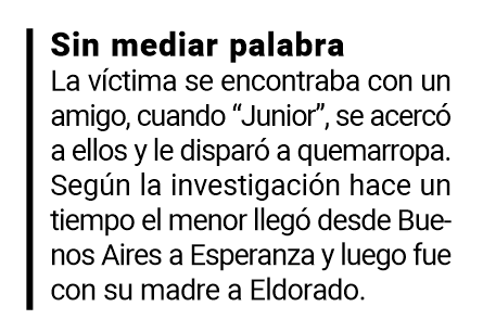 Fue durante la noche del domingo, cuando se escuchó un disparo en el barrio Santa Rosa. El impacto del proyectil acabó con la vida de un joven mientras que el autor, un menor de 17 años, fue aprehendido cuando presuntamente tenía intenciones de abandonar Eldorado.