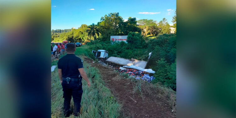 Esta tarde a la altura del kilómetro 1510 de la ruta nacional N°12, en Caraguatay, el conductor de un camión con semirremolque que trasladaba electrodomésticos, perdió el control del rodado y despistó hacia la banquina.