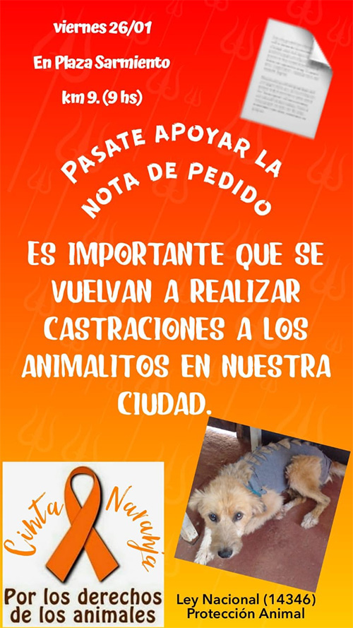 “Con la nota, que vamos a presentar la semana que viene, vamos a ver si logramos algo. La idea es seguir trabajando, no somos solo los de Cinta Naranja, hay muchos grupos que trabajan, sacan turnos y ayudan, y la castración es sumamente importante, porque así evitamos la superpoblación que tenemos en este momento de perros y gatos”, cerró.