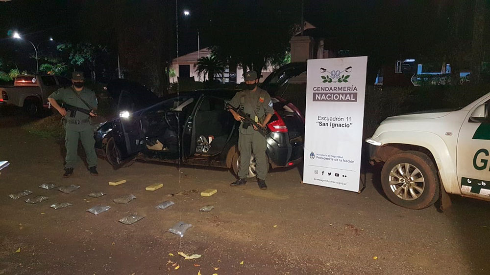 Ambos quedaron detenidos. En el piso detrás del asiento del conductor los gendarmes incautaron varios ladrillos de marihuana que totalizaron 5,845 kilogramos. Además de celulares y una balanza de precisión.