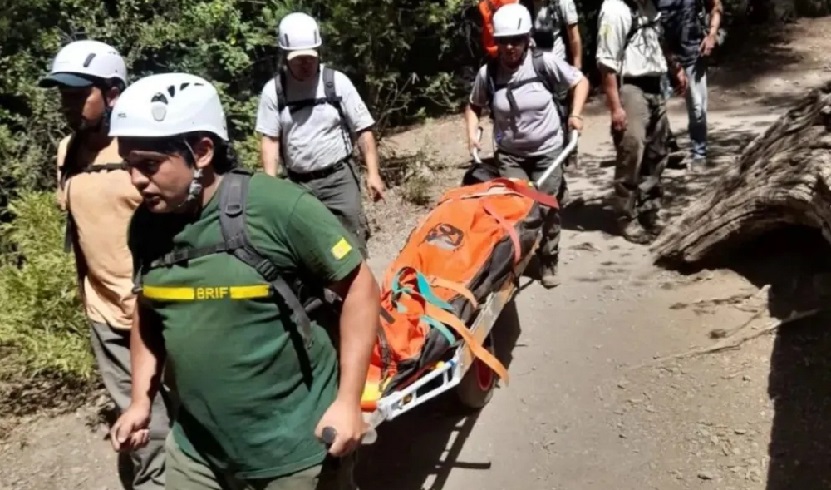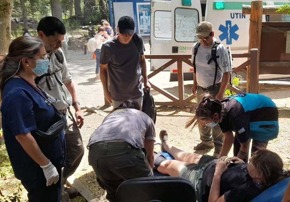 Brigadistas del Departamento de Incendios, Comunicaciones y Emergencias del Parque Nacional Bariloche, junto a Guardaparques de la Seccional Gutiérrez, lograron bajar a la mujer que realizaba el recorrido por el sendero hacia el mirador del Lago Gutiérrez, en el Parque Nacional Nahuel Huapi.